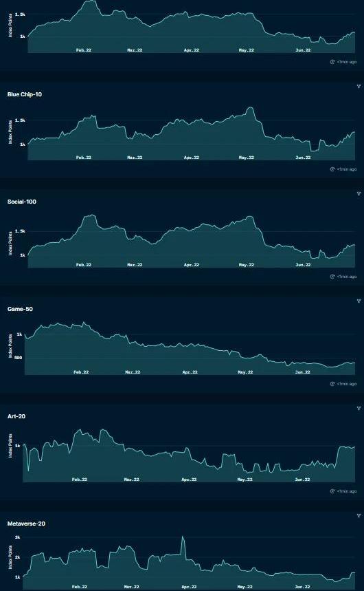 虽然在为传统金融资产定价时依赖于几个微观和宏观金融指标,但NFT的新生性质和广泛的加密市场意味着很少或有限的可靠市场指标有助于确定资产的估值和市场情绪。在缺乏可靠指标的同时,NFT市场情绪也受到投资者投机的推动(详情请见Gunay&Muhammed,2022).与比特币或以太坊等加密资产不同,NFT是不可替代的,这意味着每个代币都是唯一可识别的,拥有不同的价值,并代表一种独特的工具。NFT独特的不可替代特性,为各种应用引入了采用和实施区块链技术的新方法。尽管关于NFT的稀缺性维度一直存在争议,但利用NFT属性的创新方法正在出现。例如,NFT用于记录和表示艺术收藏品。其他值得注意的应用包括向其他资产分配权利、元宇宙中土地和资产所有权、物联网(IoT)实施、点对点的能源交易,甚至野生动物保护。此外,我们之前的NFT指数方法论,论文里分析了500多个NFT集合,使我们确定了NFT的四大类别——艺术、社交、游戏和元宇宙。该分析的一个关键观察结果是NFT资产具有多个用例,并且可以分为多个NFT类别。鉴于传统的估值模型不一定适用于加密资产,人们已经将重点转移到探索投资者情绪以驾驭这个市场。此外,现有文献表明,加密资产市场效率低下,并且不符合有效市场假设。因此,本文是在确定NFT的价格行为时调查投资者情绪的作用的早期尝试。本文重点关注NFT作为一种资产类别,而不是单个资产的NFT集合。我们的主要目标是确定可以解释NFT价格行为的投资者情绪代理。为该分析选择的投资者情绪代理包括模型,例如价格对过去实现的波动率的回归,以及衡量数量、销售速度甚至社交媒体“NFT”搜索出现的量化指标。下面的第三部分概述了我们的方法,而第四部分报告了我们的实证分析结果。实证研究主要通过上下文相关的因果分析进行,我们估计了一个通用最小二乘回归模型,以评估NFT回报在观察期间对各种NFT特定“情绪”变量的依赖性。我们采用了一个由八个NFT集合组成的基线NFT市场指数。该指数旨在代表整体市场行为,并具有截至2021年初数据可用性的优势。一旦确定NFT一篮子的价格行为,我们就针对NFT投资者情绪代理的影响对其进行了测试。最后,第五部分详细介绍了我们的NFT投资者情绪指标的含义。3.方法论和数据