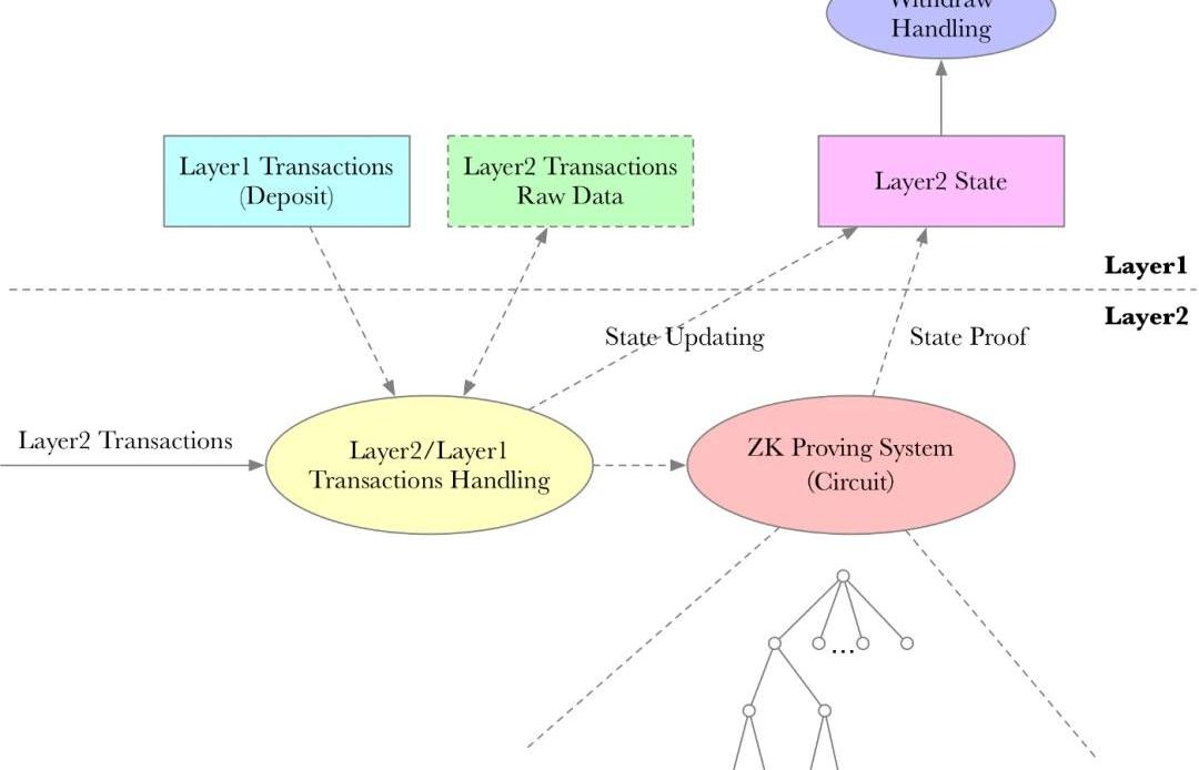 用户在zkSync提交交易,zkSync的sequencer对交易进行执行和存储,分批次将状态证明和新状态完整提交到以太坊主网上的智能合约中.