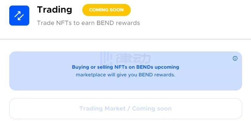 BendDAO交易NFT的功能会在未来上线除了NFT借贷业务,BendDAO似乎也想从OpenSea中分一杯羹。官网显示计划上线NFT交易功能,用户可以通过购买/出售NFT来获得BENDToken奖励。在未来,用户通过「付首付」、「分期购」、「信用贷」等方式去购买一个蓝筹NFT也是有可能实现的。NFT市场存在多种需求,BendDAO似乎不想仅仅局限于NFT借贷业务,高扩展性和对未来的无限想象,让它看起来更像是一个「NFT银行」。BendDAO潜在的问题