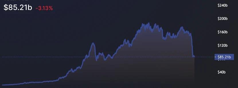 随着加密货币市场行情急转直下,流动性挖矿的激励普遍下滑,DeFi收益率也随之下降,链上活跃度已经出现了明显的遇冷迹象。曾经把稳定币存入货币市场协议仍然能揽获两位数年化收益率的日子已经一去不复返了,现如今,你已经很难能找的到年化收益率超过4%的稳定币理财了。DeFi锁定资产的快速流失导致了收益率的迅速下降。UST崩盘后所有链上DeFi协议的TVL在短短一周内自1370亿美元骤降38%至850亿美元。此外像stETH-ETH等存在「锚定」设计的机制也因为市场的恐慌情绪,一度遭受了明显的冲击。