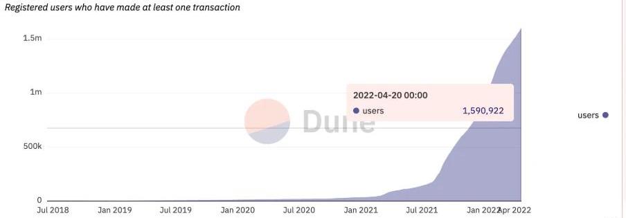 先从数据来说:截止2022年4月20日,Opensea交互的总地址数为159万+,月交易额最高是2022年1月,达到了49.6亿美元。没有人能想到,一年前2021年1月,Opensea的交易额才807万美元。