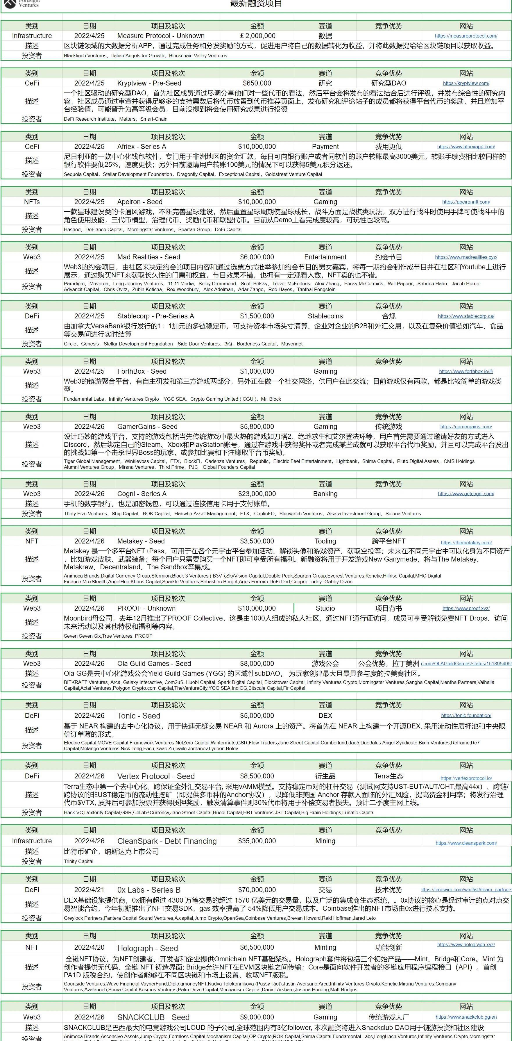 项目最新融资情况
