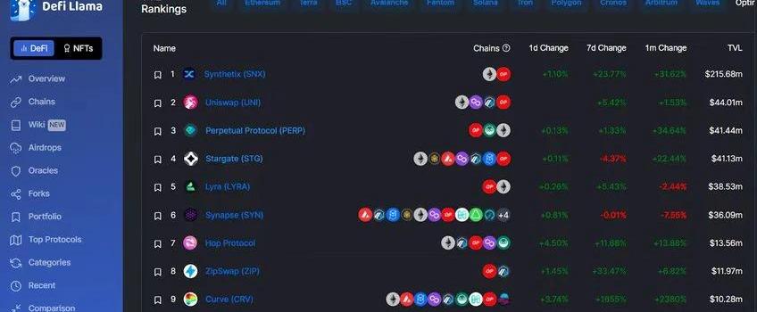 目前十大OptimismDappSynthetix在Optimism上锁定了2亿美元的总价值,合成资产协议Synthetix目前是L2上最大的Dapp。不过,这并不奇怪,因为Synthetix是第一个采用了Optimism的Dapp,所以它的先发优势已经转化为L2上早期特征。UniswapUniswap是去中心化交易的Web3标准。去年夏天,当DEX在Optimism上推出时,它的到来引发了人们对使用Optimism的DeFi场景的新一轮兴趣。如果你想以低廉的价格进行加密货币交易,UniswapV3是目前你最好的选择之一。Perpetual