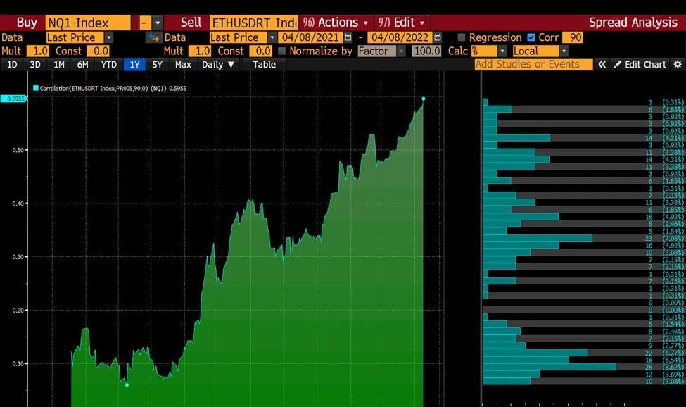 Ethervs.NDX90-daycorrelation