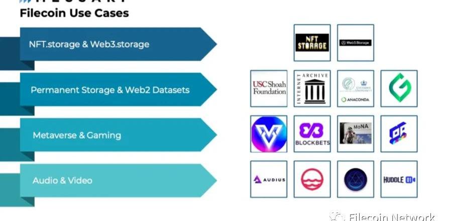 Filecoin生态很庞大,正急剧扩展,并将自己定位为分布式网络的支柱。随着云存储需求的增加,Filecoin提供了替代流行的中心化平台的方案。现在已经出现了不同的额外使用场景,而还有新的将会在不久的未来实现。有四类使用场景已经有很高需求了:(1)NFT和Web3存储,(2)永续存储和Web2数据集,(3)元宇宙和游戏,(4)音视频。