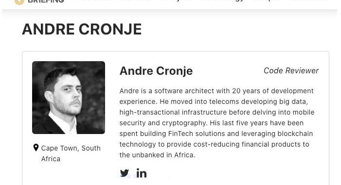 在就职一年多后,AC离开了CTI,开始辗转就职于各种技术类公司。先是就职于非洲移动通信公司沃达康工作,担任技术团队负责人,在这期间,他接触了大数据、集群、机器学习等专业化业务。在2009年到2013年期间,AC先后在Mapplications担任移动项目开发人员,以软件架构师的身份就职于FullFacing。后来,AC进入了大型零售公司ShopriteGroup,负责搭建该公司的借贷、保险和零售平台。但工作几年后,AC发现整个行业发展空间已经不能满足他。大概是在2017年,独自一人待在办公室的AC开始寻思找点新鲜事情做。当时加密技术刚迎来炒作,社交媒体陆续开始出现相关报道。因为在沃达康工作时,他们团队曾寻找过类似解决方案,所以在得知这种分布式共识解决方案时,AC感觉找到了新大陆,开始深入研究。为获得更深入的知识和信息,AC开始翻代码,并开始在社交媒体记录自己的学习过程和成果,加密媒体CryptoBriefing的负责人开始联系他开设专栏。AC从2018年开始在CryptoBriefing更新专栏,并深度评审了QuarkChain、Holochain、CPChain、SkrumbleNetwork、NuCypher和bloXroute,以及Emotiq、Coda、Arweave和Ankr等众多项目的代码和解决方案,其中不乏今天仍被关注的明星项目,例如Celer、IRISNetwork和Spacemesh等,汇聚了一批忠实粉丝。