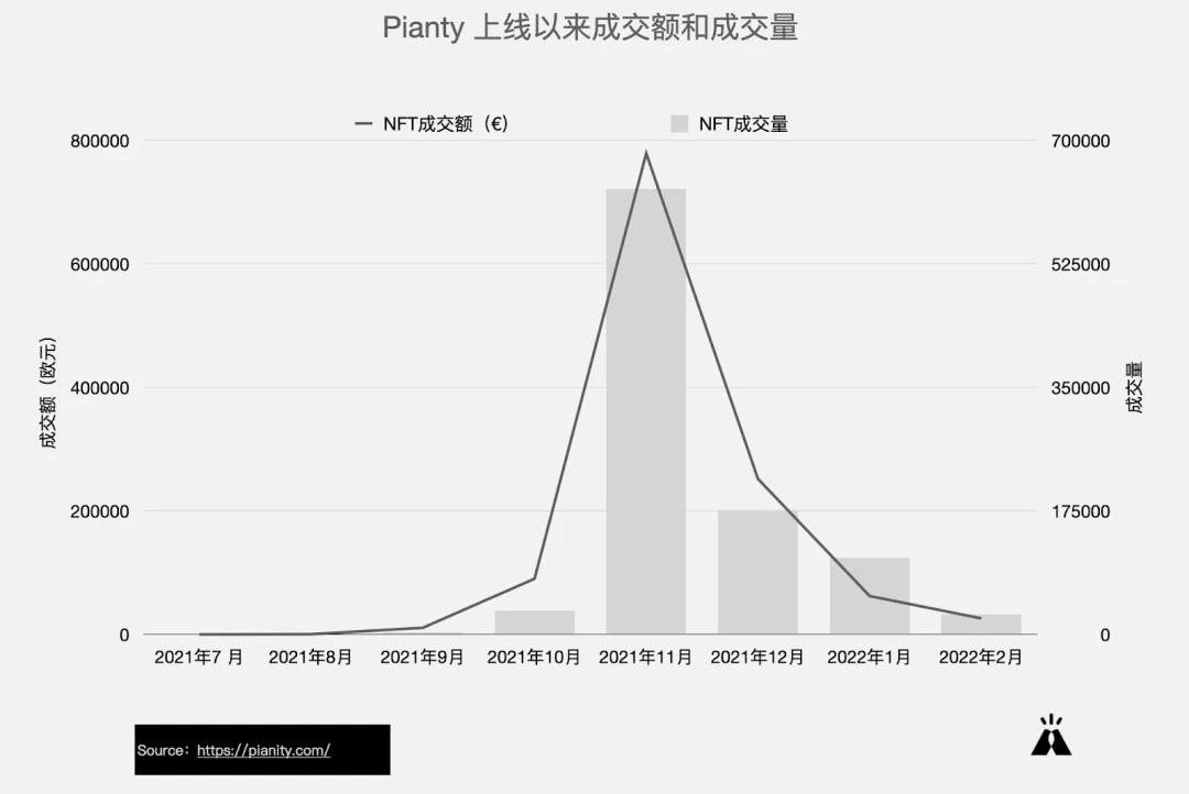 自从1877年发明录音以来,音乐产业就与技术的发展携手并进。从实体唱片到流媒体,每一次的技术升级都为音乐产业带来更广阔的市场。Web3会给音乐产业带来什么样的改变?从去年底开始,越来越多人关注Web3音乐,普遍认为音乐会是继图片NFT以后下一个热点,这些音乐项目现在发展的怎么样,我们通过爬取官方数据,近距离来看一看。开始之前先简单梳理下当下传统音乐行业的痛点:创作者对于版权的掌控过弱且难溯源。根据Alpha案例库的数据显示,在音乐版权相关案件的统计中,由知识产权权属、侵权纠纷的案件性质数量占97%以上。创作者获得的收益过少。Soundcharts在2019年的调研显示,Spotify、AppleMusic、GooglePlay支付给创作者的每次播放大约为0.003~0.005美元,音乐创作人只能获得全平台收入的13%。作品发行渠道被垄断。发行权限基本掌握在流媒体平台、唱片公司等第三方公司手中。为了解决这些问题,Web3领域出现了许多音乐项目,力求在个人收听、音乐共享、音乐收藏、版税分成、自由创作等不同维度下,将创作者和粉丝直接联系起来,打破原有行业中的垄断及低效问题,重塑音乐行业新格局。2021年,伴随着牛市的发展,涌现了一大批音乐相关的Web3项目。本文将从收藏平台Pianity、版税平台Rocki、创作平台Melos三个Web3音乐项目的商业模式及交易数据,梳理Web3音乐平台赛道的现状及未来的发展潜力。Pianity:以代币激励的纯正音乐平台