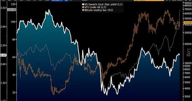 原油价格在时隔14后年再次突破每桶100美元大关,对于比特币来说,这似乎是个后期看涨的利好。而对于原油市场来说,恐怕将会将复制2008年先涨后跌的走势,并面临着崩盘和衰退的命运。上一次的全球金融危机促使了比特币的诞生,以及北美从净进口国向头号能源出口国的转变。而这次的乌克兰冲突有可能标志着旧世界对于石油依赖的终结,新世界将会拥抱新技术,尤其是加密资产。与此同时,商品价格的飙升也向全球性的经济衰退火上浇油。不仅如此,随着加密货币的大量涌现,比特币和以太坊的供应缺乏弹性,且没有得到广泛采用。比特币、债券、和原油