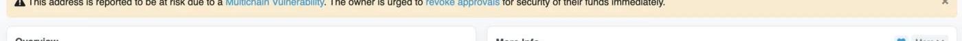此外,Multichain与Etherscan浏览器进行联系,为攻击者和受影响的WETH地址设置警告提示栏。