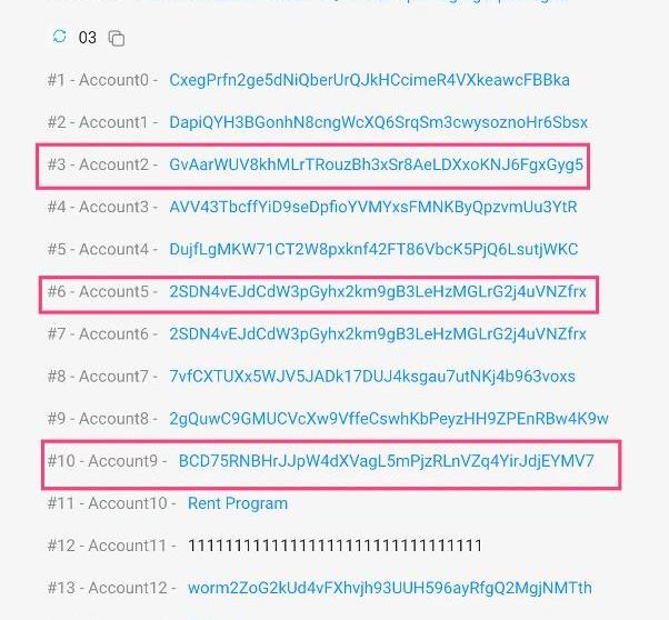 步骤一:攻击者使用假sysvaraccount调用“verify_signatures”函数:https://solscan.io/tx/25Zu1L2Q9uk998d5GMnX43t9u9eVBKvbVtgHndkc2GmUFed8Pu73LGW6hiDsmGXHykKUTLkvUdh4yXPdL3Jo4wVS①以伪造的“sysvaraccount”作为参数调用的“verify_signatures”函数: