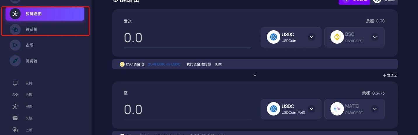 细看从Anyswap到Multichain的这次升级,其实涉及到了多个层面的进化。品牌层面自不必说,在将协议名称由Anyswap更改为当前名字的同时,也明确了自身核心业务的定位——由跨链DEX转变为去中心化的跨链桥基础设施。在协议层面,本次升级的一项主要内容为协议治理代币的调整。升级完成后,Multichain的治理代币将由ANY1:1变更为MULTI,由于在本次升级中砍掉了DEX相关功能,所以相应的代币经济模型也须进行相应的调整,但主要只会涉及到尚未流通的MULTI。未流通的MULTI被锁定在智能合约中,具体用途由DAO决定。同时,ANY原有的回购与销毁经济模型将进一步升级为veMULTI模型,详情可见Multichain后续提案与公告。产品层面则是本次升级的重中之重。在新版前端中,Multichain将旧版前端中「跨链桥」和「多链路由」这两个跨链入口统一合并成了「多链路由」。