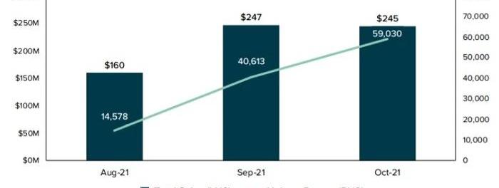 金融并不是Solana数字经济中唯一增长的领域——在消费方面,Solana的链上表现同样不俗。最近几个月,Solana链上代表数字财产所有权的非同质化代币(NFT)也有所增长。基于Solana区块链的NFT总市值已升至10亿美元以上,SolanaNFT月销售额已增至约2.5亿美元,而独立买家数量在过去三个月中增加了约4倍,达到约60,000人。图7:SOLANANFT二级销售量和独立买家数量