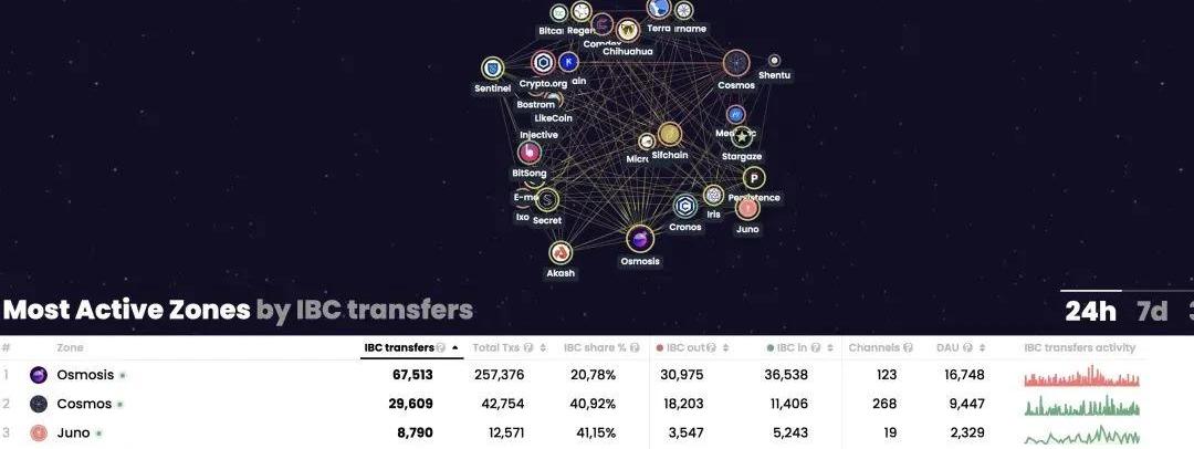 以Cosmos为代表的多链Hub模块设计多链Hub是最简单的模块化设计,这是指通过标准协议相互通信的多条区块链,在Cosmos的例子中,我们看到了Terra、Osmosis、Cosmoshub、Crypto.Org等29条通过IBC通信协议相互连接的区块链,这些区块链通常是针对某个用例而优化定制的,这里便以IBC使用量最大的Osmosis为例。