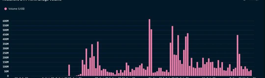 在多链的未来中,L1甚至L2的一个重要特征是可访问性。用户能够快速、安全且低成本地将代币从一个区块链转移到另一个区块链非常重要。这可以通过所谓的区块链桥来完成,这是一种允许将代币或任意数据从一个链传输到另一个链的连接,从而实现网络之间的互操作性。对于ERC20代币从以太坊到Avalanche的C-Chain的转移,用户可以使用AvalancheBridge。它是一个去信任的桥梁,支持多种ERC-20代币,最著名的是WETH、USDC和WBTC。转账总共需要10-15分钟,费用低3美元。可以在此处找到有关费用和其他常见问题解答的更多详细信息。可以在NansenDashboards上监控雪崩桥梁活动。在Avalanche基金会在8月中旬宣布180毫米的DeFi之后,我们看到AvalancheBridge的交易量激增,仅在8月27日就达到了超过370毫米的交易量。随着更多dApp的推出,以及有信誉的风险投资公司和流动性挖掘计划的支持,Avalanche越来越受欢迎-桥上的活动继续增长并保持高容量,在9月23日达到顶峰体积超过600毫米。Avalanche桥接交易量