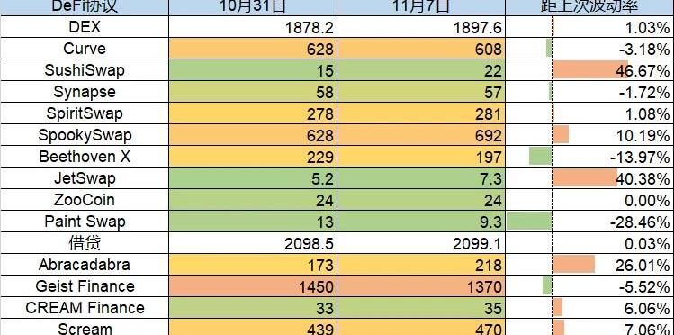 来源:DeFiLlama统计日期:2021.11.7Fantom协议锁仓量情况