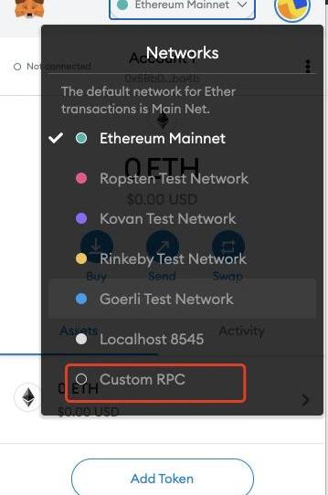 首先需要下载OKExDefiHub或者MetaMask钱包,创建自己的钱包地址,你可以看到钱包被默认设置为以太坊主网。在METAMASK页面中,选择“自定义RPC”去添加OKExChainMainNet,添加OKExChain主网,并且保证自己的钱包里有足够的代币。RPCURL:https://exchainrpc.okex.org/ChainID:66CurrencySymbol:OKT