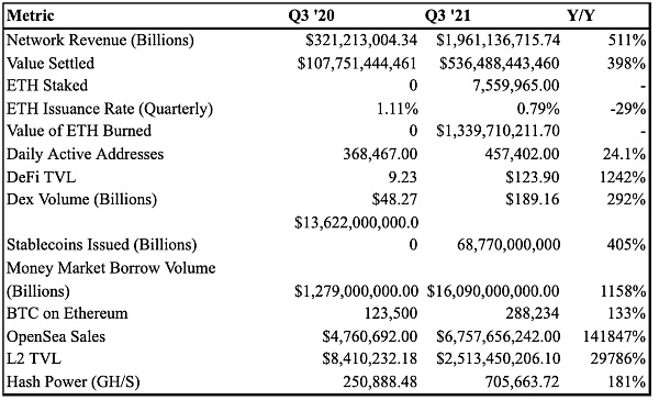 下面是世界上最大的智能合约平台以太坊截至2021年9月30日的第三季度报告。