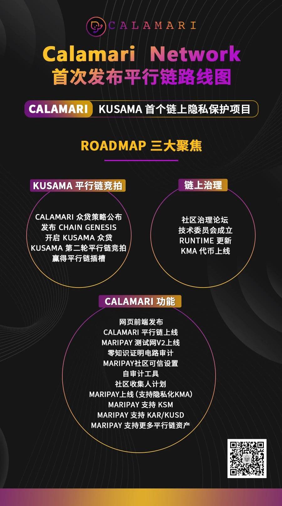 近期规划下一步,我们将从第6个Kusama平行链插槽开始参与竞拍,您可以通过Calamari官网http://calamari.network/邮件订阅关于众贷的第一手通知。