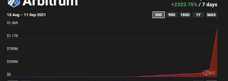 那么Arbitrum是什么?Arbitrum是一个OptimisticRollup,旨在让用户拥有以太坊主网一模一样的使用体验,但交易成本将大幅缩减,同时速度也得到显著地提高。Arbitrum于2021年9月1日推出其主网,随着用户从其他主链迁移到Arbitrum上,其网络热度正在逐步提升。根据二层数据追踪网站L2Beat,目前Arbitrum上有价值约15亿美元的代币被质押,而其中大部分是在过去几天内增加的。