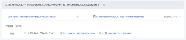 5. 其余8,155 ETH全部换成1,050,285个CVX代币并转账给该团队控制的另一个多签地址2 [0xdc71](注:该地址同时为USDM协议手续费收款地址,另CVX是加速Curve挖矿的创新DeFi项目Convex Finance的代币);