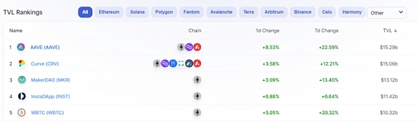 锁定在以太坊桥接上的总计 180 亿美元的代币总量超过了所有链中每个 DeFi 应用的总锁仓量。从 4 个月前的排名第 8 跃升。