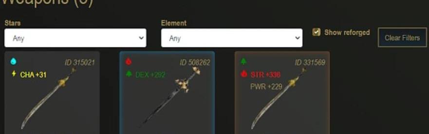 不同等级的武器造型武器也和角色一样具备四种属性,玩家也可以在铁匠铺锻造以提升战力。人物和武器组合完毕后,游戏正式开启,玩家需要与随机出现的敌人作战,获胜可获得一定的SKILL奖励。