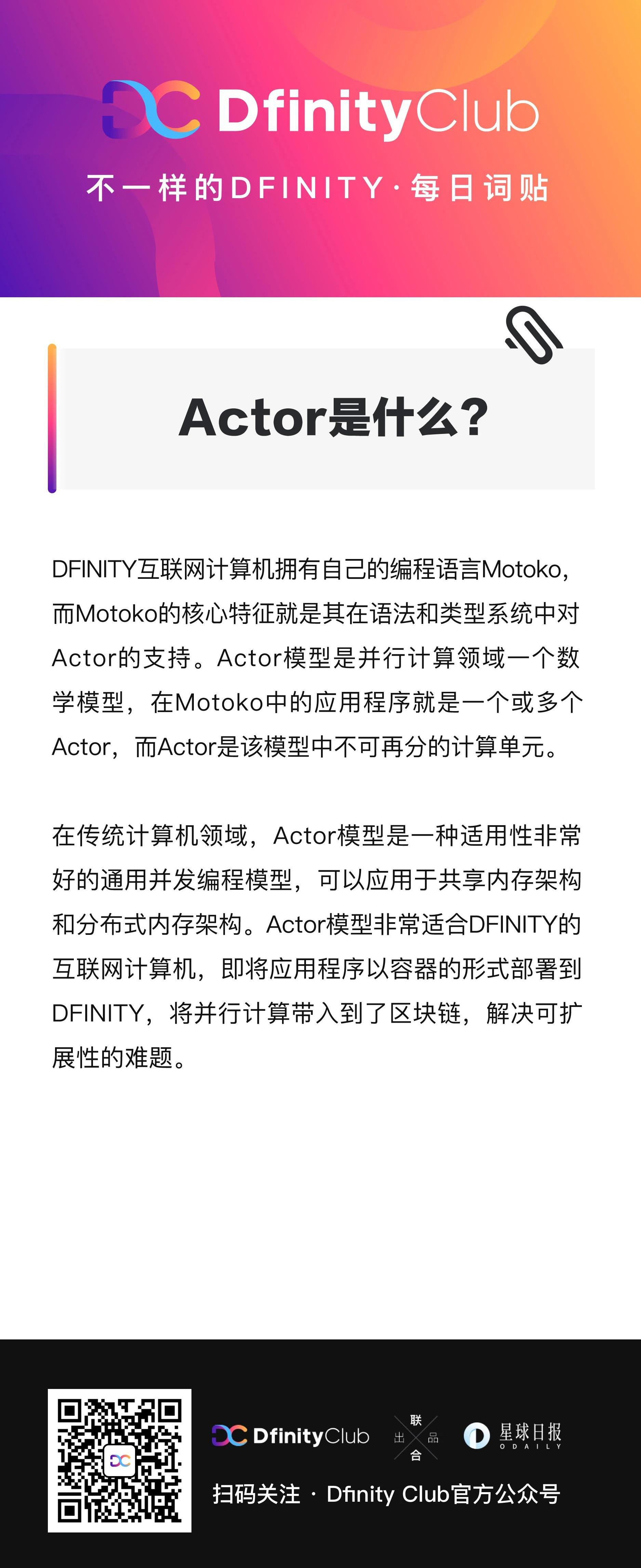 DFINITY互联网计算机拥有自己的编程语言Motoko,而Motoko的核心特征就是其在语法和类型系统中对Actor的支持。Actor模型是并行计算领域一个数学模型,在Motoko中的应用程序就是一个或多个Actor,而Actor是该模型中不可再分的计算单元。在传统计算机领域,Actor模型是一种适用性非常好的通用并发编程模型,可以应用于共享内存架构和分布式内存架构。Actor模型非常适合DFINITY的互联网计算机,即将应用程序以容器的形式部署到DFINITY,将并行计算带入到了区块链,解决可扩展性的难题。