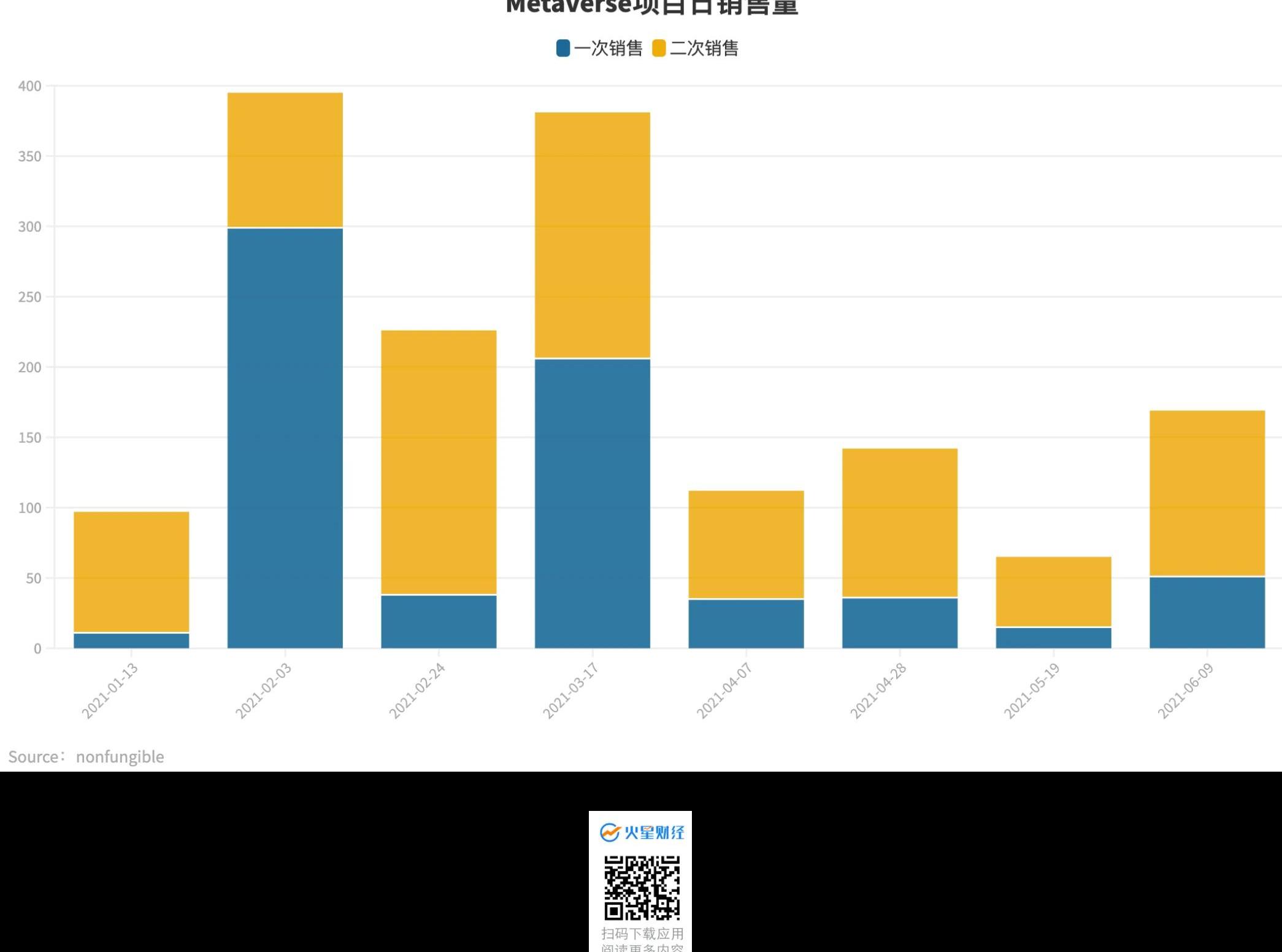 在此次NFT浪潮中,Metaverse概念项目得到快速发展。根据nonfungible数据,元宇宙项目每日销售额于2月开始逐步上涨,基本维持在10万美元上方,远高于2020年整体水平。另外,与其他NFT项目销售情况不同,元宇宙项目的在二级市场上的日销售额普遍高于一级市场销售规模。
