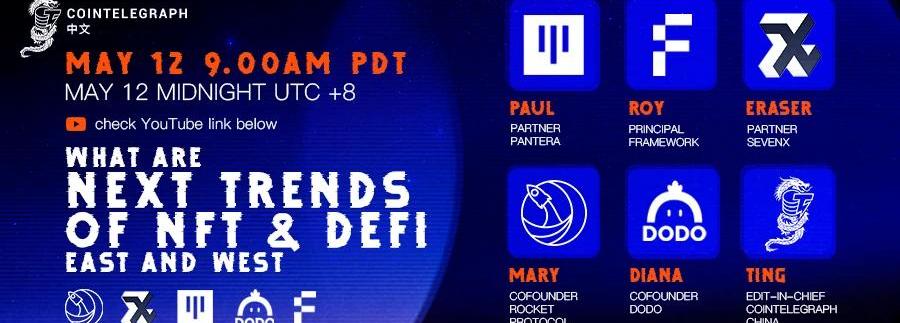 5月12日,MixMarvel孵化的区块链基础设施项目RocketProtocol和CointelegraphChina在YouTube上举行了一场圆桌直播活动。PanteraCapital、SevenXVentures、DODO和FrameworkVentures的知名代表为本次活动的邀请嘉宾,处于三个不同时区的他们从东西方两个角度分享了对DeFi和NFT未来趋势的见解。NFT和DeFi领域的演变有何不同?它们的未来会是什么样子?