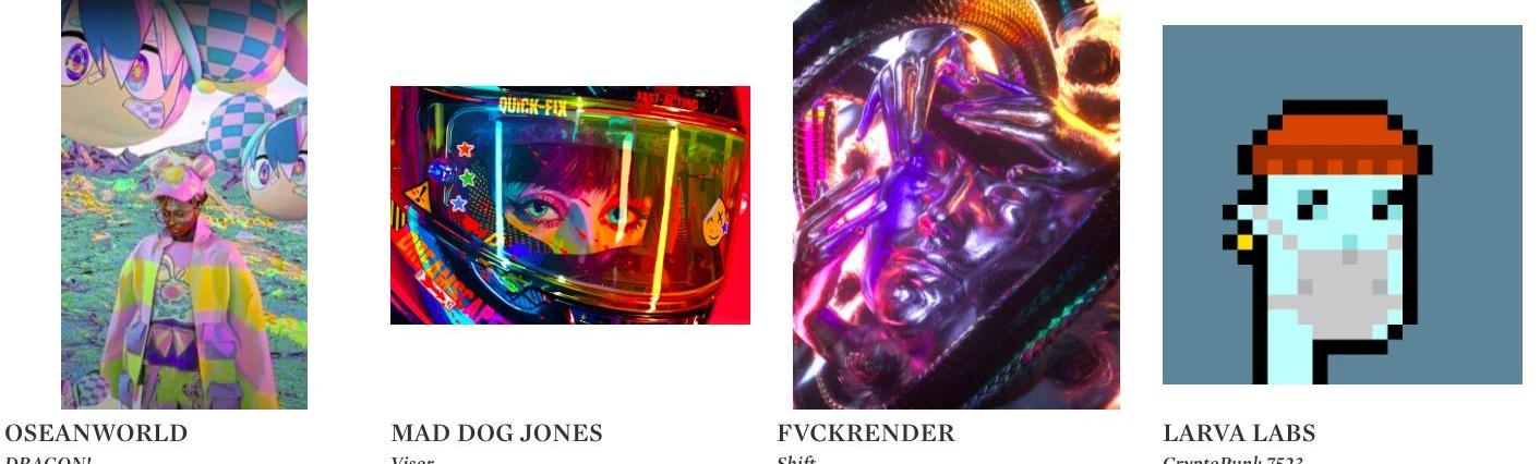 部分拍品「NativelyDigital:ACuratedNFTSale」拍卖活动由NativelyDigital与RobertAlice共同策划,涉及到的艺术品也侧面反映出主办方对历史上最重要的作品的看法,并代表这一领域众多具有突破性艺术家的理念和风格。活动既展示了一些最早的基于以太坊的NFT,也囊括了蕴含尖端技术创新的新型复杂NFT。主办方从四大洲联系到新兴加密艺术家来展示他们的作品,更注重这些作品背后的观念和美学。对本活动感兴趣的加密艺术家可以通过官方通道报名,提交个人作品。此外,加密和数字艺术社区也可以推荐他们喜爱的艺术家的作品。拍卖将在6月3日至6月10日间在sothebys.com上进行。