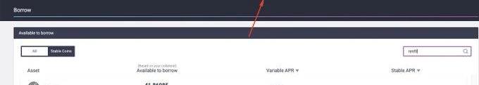2、接下来,转到Aave上的借贷页面,以低浮动利率借入renFIL。请记住,您最多可以借入已存入稳定币价值的80%。