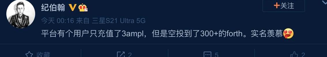 世界就是这么魔幻!有人在为资产缩水而哭泣,有人却还沉浸在又一次的不劳而获的惊喜中无法自拔!4月22日早上,第一代算法稳定币龙头AMPL大撒红包,符合条件的用户都可以领取治理代币Forth。具体空投数额根据用户AMPL地址过去的链上互动频次、Geyser项目参与度和持币时间来划分领取代币的数量。FORTH发币就直接上coinbase,刚上线的FORTH价格波动较大,不过目前价格仍有36美金/个,据说有7.5万个用户都领取到了数万甚至数十万的空投奖励。