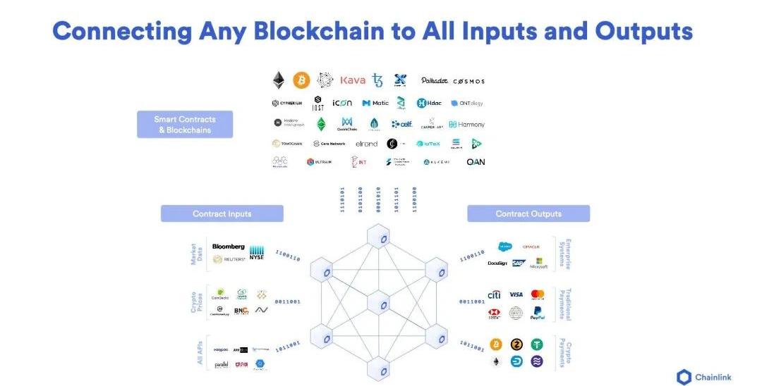 目前有几百条区块链,这些链上运行的智能合约覆盖丰富的应用场景,其中包括金融、保险、游戏和国际贸易等。对于数据提供商来说,要集成至所有区块链需要耗费大量时间和精力,而这些时间本来可以花在更核心的业务上,而不是花在部署和维护基础架构上。随着区块链技术不断被广泛应用,区块链数量也将随之上涨,这将进一步加剧资源和开发者的带宽压力。数据提供商与其花时间分别接入一条条区块链,不如将这个任务交给Chainlink,将Chainlink预言机作为唯一网关,统一面向所有区块链销售数据。Chainlink现已覆盖大多数主流的区块链,包括以太坊、比特币、超级账本、Polkadot、Cosmos以及Ava等。除此之外,Chainlink还开发出了简单好用的框架,并发布了赏金计划,快速集成至新的区块链,以不断拓宽市场和应用规模。Chainlink不仅能使现有的数据基础架构立即接入所有主流的区块链,而且还能为数据提供商提供长远的解决方案,兼容未来可能出现的新型区块链。