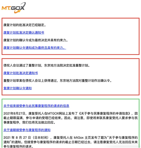 2018年6月,日本法院批准MtGox对债权人进行民事赔偿的申请,并要求提供赔付计划草案。随后,MtGox上线了在线理赔系统,支持债权人进行在线登记。但因为种种原因,赔付计划多次被延期,直到2020年12月,东京地方法院才接受了赔付计划草案,并允许债权人对其进行投票。