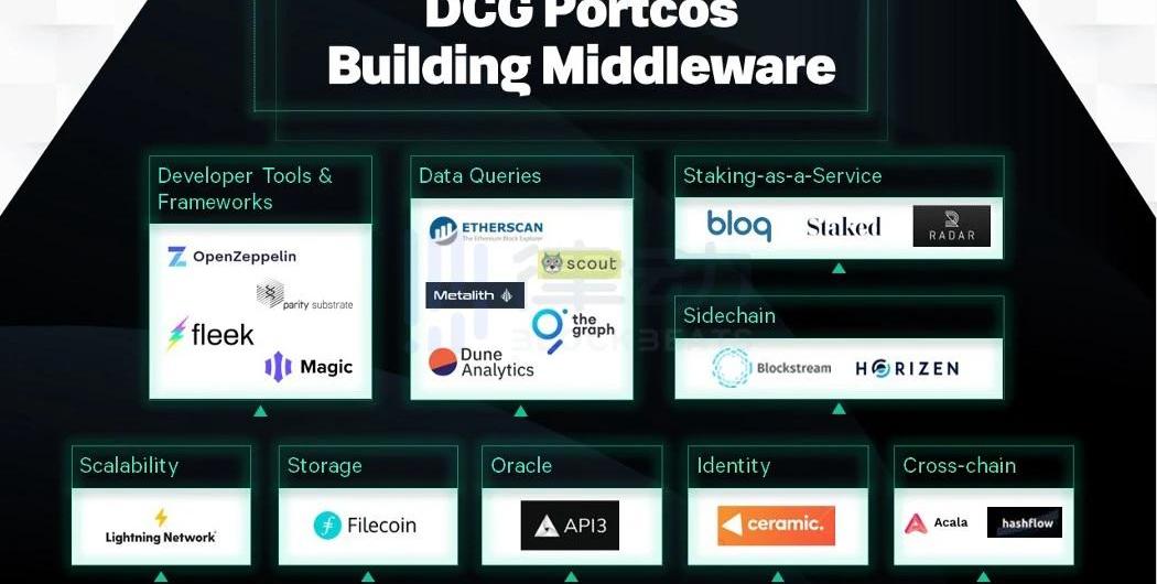 2020年,中间件项目获得了高速增长。中间件位于结算层之上,充当数据和互操作性的桥梁,并支持应用程序开发的作用。中间件的出现是产业成熟的典型特征;它们随着专业服务提供商进入市场而提高效率,让垂直一体化程度得以降低。有了这些新的「乐高」组件,商业化速度加快,业务扩展也变得更容易。随着专业技术开始为更丰富的终端应用铺平道路,Web3.0中间件的黄金时代即将到来。在DCG2020年下半年到2021年第一季度的13项新投资中,其中有7项是关于去中心化网络中间件。