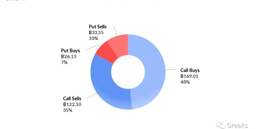 从OptionFlows数据看,今天以太坊继续看多方向成交占据了绝对多数。卖出看跌略强于买入看涨,二者共占比接近80%,方向都是看多。大宗交易较少,有两笔月底到期的深度虚值看涨,以太坊的深度虚值占比一直很高。
