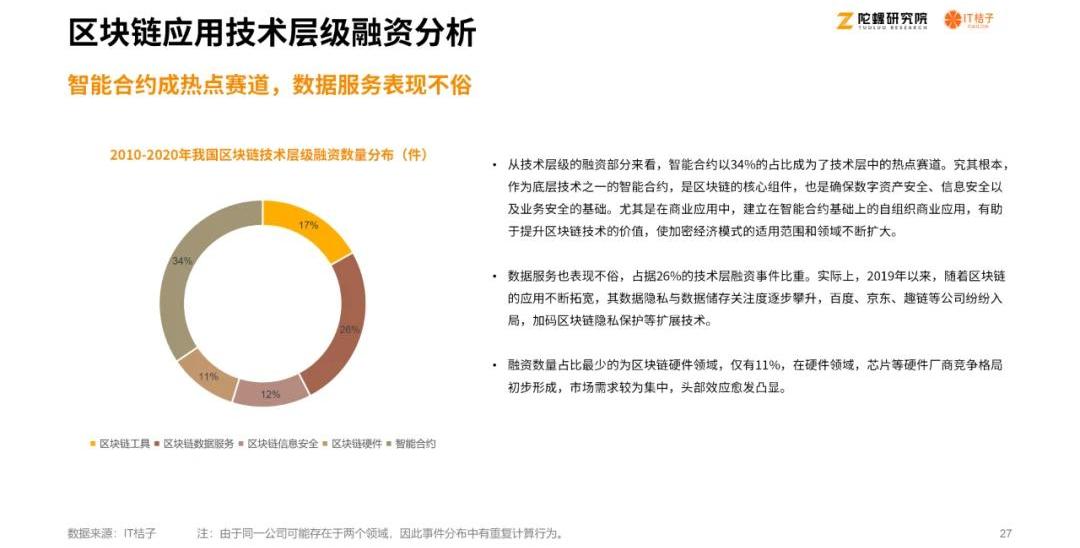 区块链,是一种由多方共同维护,使用密码学保证传输和访问安全,能够实现数据一致存储、难以篡改、防止抵赖的分布式记账技术。2020年,在疫情的冲击中,区块链在非信环境下构建多方协同信任的能力倍受关注,慈善捐助、食品溯源、出入通等创新应用不断涌现,在疫情防控复工复产中发挥了支撑作用,成为了新基建中耀眼的“新星”力量。近日,中央印发《建设高标准市场体系行动方案》,提出加大新型基础设施投资力度,推动第五代移动通信、物联网、工业互联网等通信网络基础设施,人工智能、云计算、区块链等新技术基础设施,数据中心、智能计算中心等算力基础设施建设。可以看出,区块链已明确摆在了新时代下我国经济转型发展的重要地位。与此同时,一方面,区块链技术所代表的虚拟货币屡被禁止,2020年我国监管更是重拳出击,北上广等多地出具虚拟货币警示公告,严打虚拟货币局。而另一方面,尽管在政策推动下,众多企业做了很多尝试,但作为区块链价值支撑的应用落地仍进展缓慢。围绕区块链的种种争论,究竟是技术创新演进中的引申怀疑还是伪需求引发的理性探讨?资本是产业发展的关键支撑,要洞见产业发展的现状及趋势,资本视角的解读尤为关键。在资本的眼中,区块链是作为一个怎样的角色存在?它是否真正存在内在价值?目前谁是区块链市场的投融资主力先锋?针对以上问题,由陀螺研究院、IT桔子联合撰写,星球日报、碳链价值、深圳市信息服务业区块链协会、链证经济联合发布的《2020区块链产业投融资报告》于今日面市,本报告将通过探索区块链发展的内外部驱动力以及发展历程,阐述区块链行业目前的发展现状,并通过对投融资情况的总体以及细分领域分析,解剖当下区块链发展存在的问题及前景,旨在加强大众对于区块链的内在投资价值认知,推动区块链资本市场不断完善与发展。以下为报告全文: