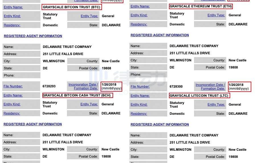 图源:Grayscale同时,律动BlockBeats查询,新增加的六大信托实体皆通过特拉华州信托公司进行登记代理,并且注册时间均为2020年12月18日。