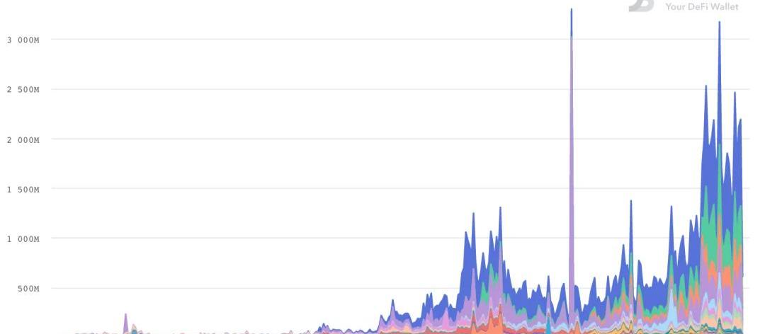 以Uniswap日交易量在8月31日超过头部交易所Coinbase为标志,以太坊上的DEX交易量从2020年初每天不到300万美金,如今仅一年时间发展到超过18亿美金日交易量的规模,怒涨超过6000倍,DEX的增长速度令人瞠目。