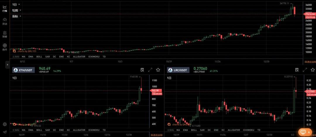 编者按:本文来自巴比特资讯,作者:邱祥宇,星球日报经授权发布。“行情总是在绝望中诞生,在犹豫中成长,在憧憬中成熟,在疯狂中灭亡。”1月4日,元旦假期第一天上班,整个币圈市场一片欢腾:BTC在3.3万美元横盘等待,ETH趁机发力,最高冲破1100美元。众多山寨币开始表演,Layer2热门项目LRC一度暴涨70%,压抑了多年的垃圾币群魔乱舞。很多群友开始奔走呼号:牛市,终于来了!