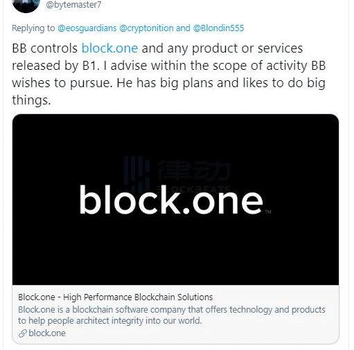 如果以事后诸葛亮的角度,BM的离职是有征兆的。今年1月4日,他在Twitter上曝出,「Block.one」的CEOBrendanBlumer(BB)控制了Block.one和所有的产品/服务发布事务,他所能做的就只是在BB追求的范围内给出建议。他有大计划,喜欢干大事。」言外之意,BM表示自己没有什么话语权,都是BB在负责。