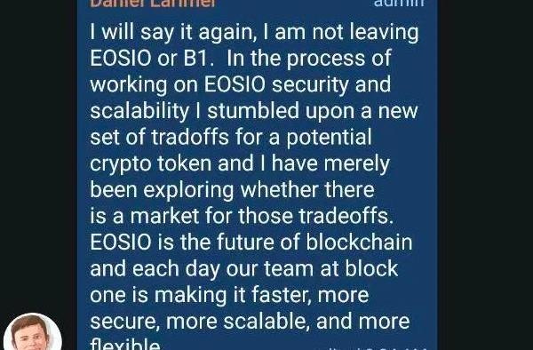 编者按:本文来自区块律动BlockBeats,作者:0x290x66,Odaily星球日报经授权转载。EOS再一次上了币圈热搜,这一次,EOS创始人DanielLarimer宣布辞去自己在EOS母公司Block.one的CTO职位。这封辞职公告发了两遍,一遍放在了HIVEBlog,一遍放在了Voice,其他的主流社媒体Twitter都没有,而这两个平台,是BM曾经和现在的社交平台。辞职公告中,BM并没有表露太多新的想法,他说,「仍然会继续创造自由市场、确保自由、正义。」这正是他曾经创造EOS的初衷。不忘初心的BM,接下来要去哪里了?「家族企业」Block.one