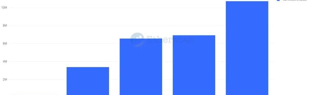 在2020年上半年,Etherscan的新认证合同保持稳定。在第三季度,随着DeFi和流动性挖矿的增长,它显著增长。它在11月达到顶峰,在年底随着ETH价格(以及随之而来的手续费)的上涨而下降。