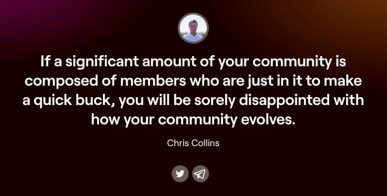 如果将长期思维应用于社区建设,将有更大的机会吸引那些真正有兴趣推进社区目标的人,而不是服务于那些可能随时会去寻找下一个猎物的投机者。我很高兴看到各地的社区以一种可持续的方式,利用社交代币来实现他们的目标。