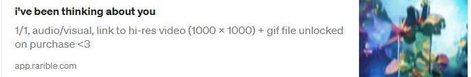 https://superrare.co/artwork-v2/what-do-we-leave-behind-15264Oshi我一直在想你(i’vebeenthinkingaboutyou)销售价格:1.5ETH($712)