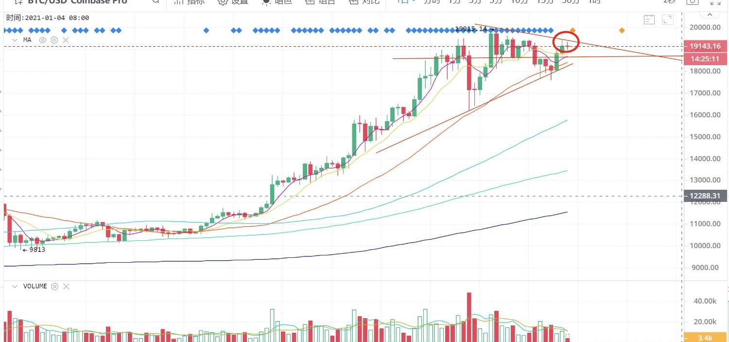 12月15日为Mt.Gox民事诉讼最终期限,市场出现一定担忧情绪,BTC也已出现一定滞涨。本周CMEBTC期货开盘跳空高开,形成一个1040美元的缺口,BTC有一定回补需求。伴随主流交易所陆续推出ETH2.0一键质押,ETH质押量上升,表现也相对强势,后市可以给与更多关注。从基本面看,市场目前多空博弈激烈,后市趋于宽幅震荡。BTC持币地址数出现高位减持迹象,这表明伴随BTC上涨,之前套牢筹码出现松动,这为BTC持续上攻造成阻力。合约市场和矿工数据显示出一定看涨信号,但相对较弱,尚不足突破上方阻力。从资金角度看,资金出现一定出逃迹象,场外关注度变化不大,场内买盘力量出现转弱迹象。从技术图上看,BTC上攻受阻,维持高位震荡,今日整体表现相对强势,如果可以放量突破19400美元,则有进一步上涨空间。综合来看,BTC目前偏离MA5较远,市场上方抛压也仍然较重,存在一定回调趋势,下方短线支撑位为18800美元。摘要