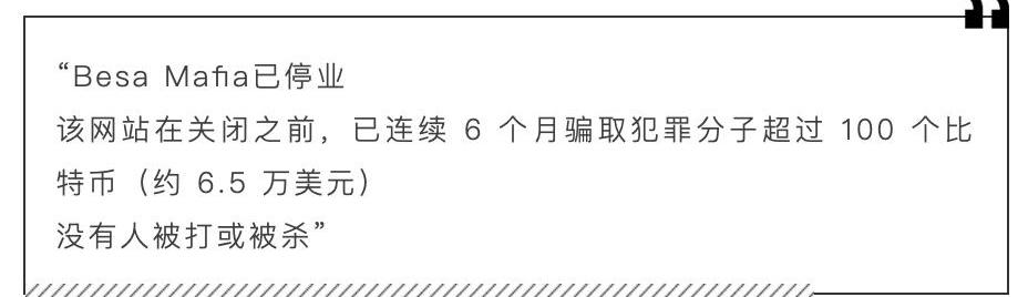 BratvaMafia是最新版的BesaMafia。图源:BratvaMafia我们对Yura了解甚少。他吹嘘自己赚了很多钱,这可能是真的,特别是考虑到去年比特币价格的飙升。他声称自己是阿尔巴尼亚人,但根据SantoshSharma的回忆,还有Monteiro对Yura在维基词条上的评论进行的IP分析,他与有可能是罗马尼亚人;与他通过多次电子邮件EileenOrmsby认为,Yura可能只有20多岁。不过,也许最有趣的问题是Yura,又名Barbosa,是否为的线人。他当然曾试图把自己伪装成好人。当我们通过电子邮件交谈时,他恳请我不要说他的网站是局。“如果你打算举报我们借暗杀实行,那么你基本上就是站在潜在凶手的一方,帮助他们避免和陷阱,并帮助他们寻找其他手段进行杀戮。”Yura/Barbosa写道,“罪犯和潜在杀人犯是一种是有道德的,因为我们会拯救受害者。”他在留言上署名“救命恩人Barbosa”。他自我辩护的理由是,他阻碍了潜在凶手实施计划,抢走了他们宝贵的时间和金钱。更重要的是,他说他正在向提供所有的目标信息,并坚持说他一直在与FBI合作。“BesaMafia被黑后,FBI探员当场和我聊了起来。他告诉我,他们不想逮捕我,我不是他们的追捕目标,他们想逮捕的是凶手。”Yusa/Barbosa写道,“他们不关心一个子。他们关心的是杀人犯。”Yura拒绝提供他与FBI通信的证据,因为这会证明他的网站是个局。他恳求我不要举报他,并提出要交出所有目标的名字。他最后说,如果我写他的生意是局,他将否认曾与我交谈。Yura的话半真半假。的确,Yura为了树立自己“善良子”的形象,曾将此信息透露给接近他的记者:他将两起案件交给CBS,CBS再将案件交给,以便进行调查和逮捕。而bRspd曝光的信息中,一些对话确实显示,Yura早在2016年就接触过自称在FBI达拉斯办公室工作的人。FBI拒绝确认或否认曾与Yura合作。Yura说的其他事情都不是真的。他坚称自己从不纵容暴力,但有证据表明,他曾逼迫想成为杀手的Thcjohn2发动攻击,但显然一直没有如愿。他将自己形容为一个杀手诱捕者,给自己披上光鲜亮丽的盔甲,但他的说法毫无可信之处。bRspd私聊我说,他曾找过Yura,想把BesaMafia变成一个真正的犯罪分子诱捕网。“我想和他合作,让网站变得更好更安全,我们不会实施局、不会盗取钱财,而是收集更多的数据,真正帮助人们识别罪犯。”bRspd在9月写道。据bRspd说,Yura拒绝了。“他只是想要钱,”bRspd告诉我,“他是个大子,除了钱,他什么都不在乎。我和他的每次对话几乎都包含了‘钱’或‘比特币’这个词。”根据Monteir对BesaMafia的比特币钱包分析,Yura可能已经积累了近500万英镑。bRspd补充说,Yura与合作的说法——至少截至2016年——“完全是一派胡言”。不过总的来说,Yura说的有道理吗?如果没有他的局,一些人就会有生命危险,一些策划谋杀的人还会逍遥法外。如果没有Yura,无论是Monteiro、执法部门还是记者,都不会听说明尼苏达州的StephenAllwine或者Dogdaygod、那名新加坡的男子和丹麦的女子。Yura的贪婪、偏执和搜索引擎优化策略在不知不觉中创造了一种工具,可以感知潜在罪犯的意图。我在伦敦的一家酒吧喝着啤酒向Monteiro提出了这个问题:Yura的所作所为是否对社会有益处?Monteiro认为,这件事归根结底是美德与结果论之间的哲学辩论。Yura可以说,他的网站可以帮逮捕罪犯,但他是通过煽动谋杀、怂恿犯罪和散布谎言来做到这一点的。Monteiro说,BesaMafia的可悲故事,始于他想净化公众领域的谎言。“我开始抵制假新闻。我想解释暗网是什么,想分清事实和谣言,向公众解释什么是真的、什么是假的,”他说,“你知道不?这就是我更高的目的。”