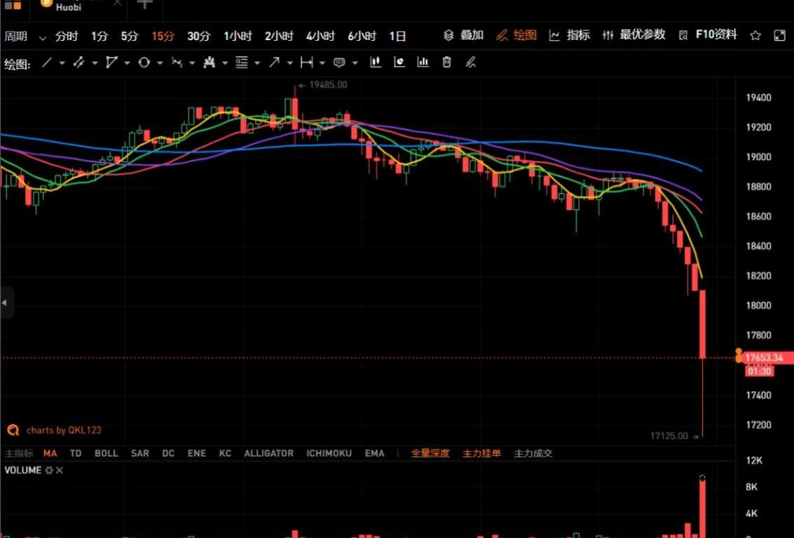 编者按:本文来自巴比特资讯,作者:邱祥宇,星球日报经授权发布。近在咫尺,忽然崩盘。11月26日上午11点半左右,比特币突然暴跌,从18913最低跌至17125,上演千刀暴跌行情。