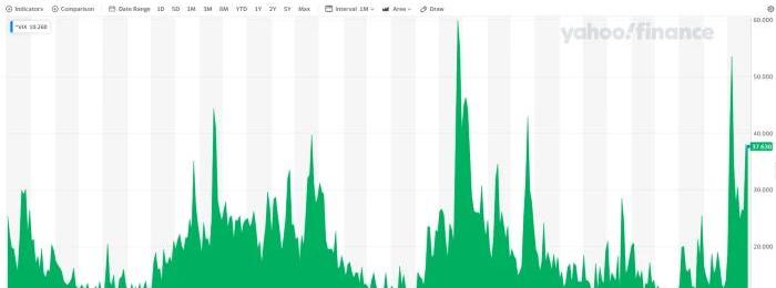 在金融和投资领域,我们有两种主要方法来衡量波动性。首先,我们通过诸如标准差和均值之类的指标来查看历史波动率。这仅是分析资产在过去12个月中的波动性,并假设未来12个月的波动性类似的问题。但是由于过去的表现永远不会决定未来的表现,所以这不是最可靠的方法。其次,我们看一下“隐含波动率”。隐含波动率是一种基于当前期权价格来预测未来情况的方法。期权只是押注未来资产的波动性-如果未来的波动性超出我们的预期,则期权的买方获胜;如果未来的波动性小于我们的预期,则期权的卖方获胜。这有点像。现在,隐含的波动并不是最终的结果。毕竟,没有人能够以100%的确定性预测未来。话虽这么说,这些预测实际上是由每日身处于市场危险之中的人们做出的。因此,隐含波动率是我们拥有的最佳衡量指标之一。那么,什么是VIX波动率?