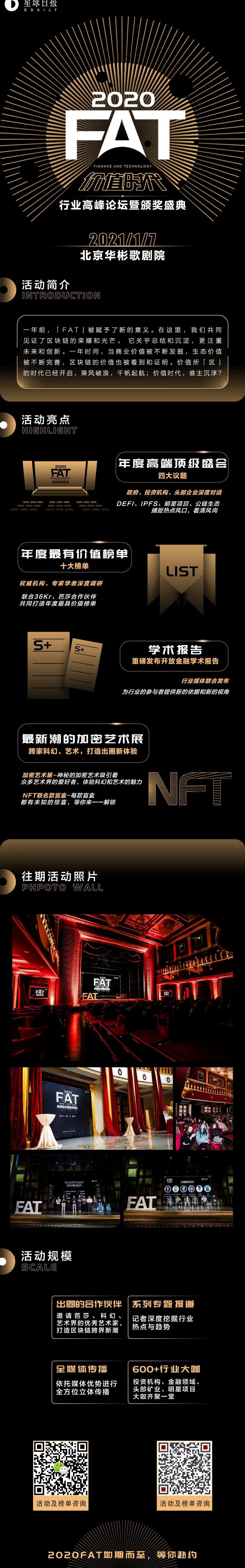 在这个价值所趋的时代,我们想要致敬不畏浪潮的王者,挖掘行业的坚守者,表彰勇于探索的创变者,寻觅贡献突出的领航者。Odaily星球日报将携手权威专家学者,开展2020「FAT」价值时代榜单评选。用最客观的数据,最专业的眼光,最权威的视角呈现区块链行业最具价值榜单的诞生。年度主榜单:涵盖人物、项目、矿业、加密金融服务、投资机构五大奖项,年度榜单通过对行业的深刻观察,通过对未来趋势的判断,洞见新的趋势和价值所在。跨界榜:表彰最出圈和最精彩的区块链跨界时刻。这一年,区块链与不同领域的联合越来越强,彰显出最具价值的行业特色,我们将联合芭莎、雪球等不同领域,评选出这一年的跨界之王。引领热度榜:DeFi项目、公链、交易所、加密社区、KOL,关于这一年最火热的话题和最激烈的探讨,总是围绕着最核心的用户展开。用户的喜爱程度决定了他们的最终人气。引领热度榜将由社区投票选出,评选这一年的人气之王。特别榜:这是一个特殊的榜单。每年除了围绕着最火热和最跨界和最风云的之外,还有坚守在行业里的奠基者和开拓者。他们是行业的基石也是行业的未来。我们期待用特别榜表彰这些最特别的价值奉献者。榜单结果将于2021年1月7日在华彬剧院揭晓,我们将邀请这些行业亲历者、开拓者、探索者和坚守者共同出席颁奖盛典,探讨由「价值」推动的行业变革、转型与创新。同时在这场盛大的典礼上,联合行业媒体,重磅发布《2020开放金融发展报告》,为企业和行业的参与者提供新的依据和新的视角。最新潮的出圈活动